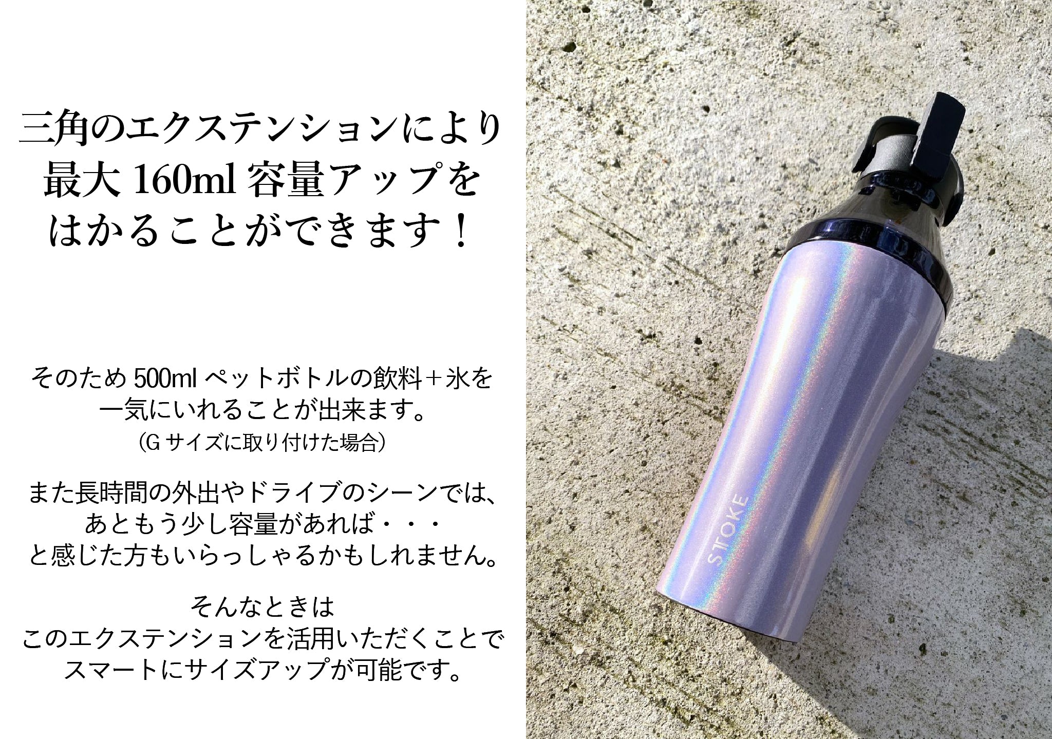 三角のエクステンションにより最大160ml容量アップをはかることができます!