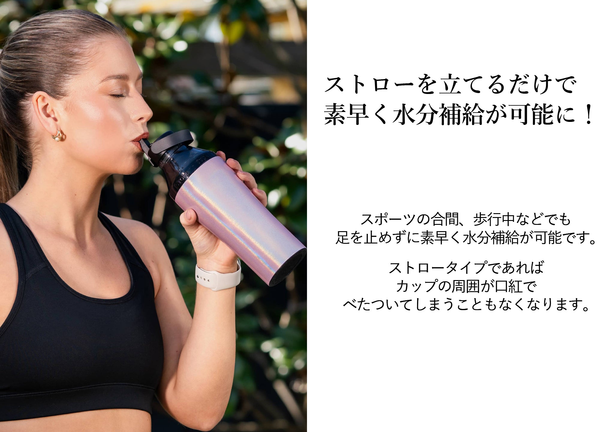スポーツの合間、歩行中などでも足を止めずに素早く水分補給が可能です。