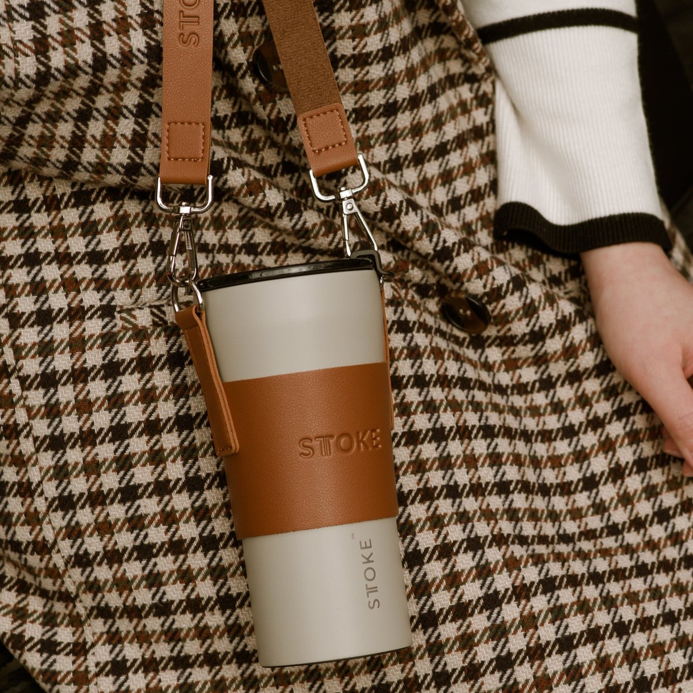 STTOKE専用にデザインされたキャリーストラップは、レザーのような質感と上品なカラーで、「持ち歩く」こと自体が心地よくなるアクセサリー。