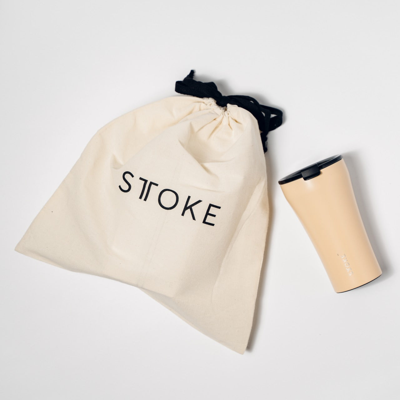 STTOKE コットンバッグ STTOKE のロゴが大きく記された、クールさと可愛さを併せ持つこちらは、男女問わずプレゼントに使いやすいデザインになっています。ひも部分が長く、ショッパーのように使えるのも便利なポイント。手渡しでプレゼントするときにも活躍すること間違いなしです!