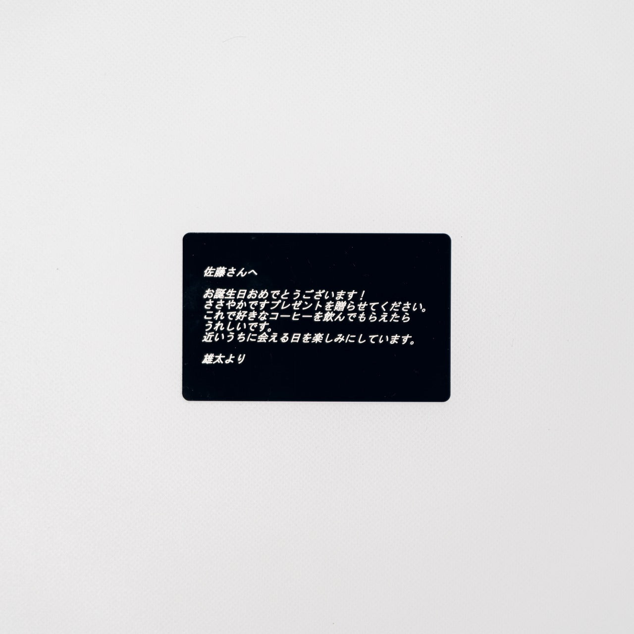 大切な思いを100文字以内の文章で刻印することができるサービス『STTOKEメタルカード』。