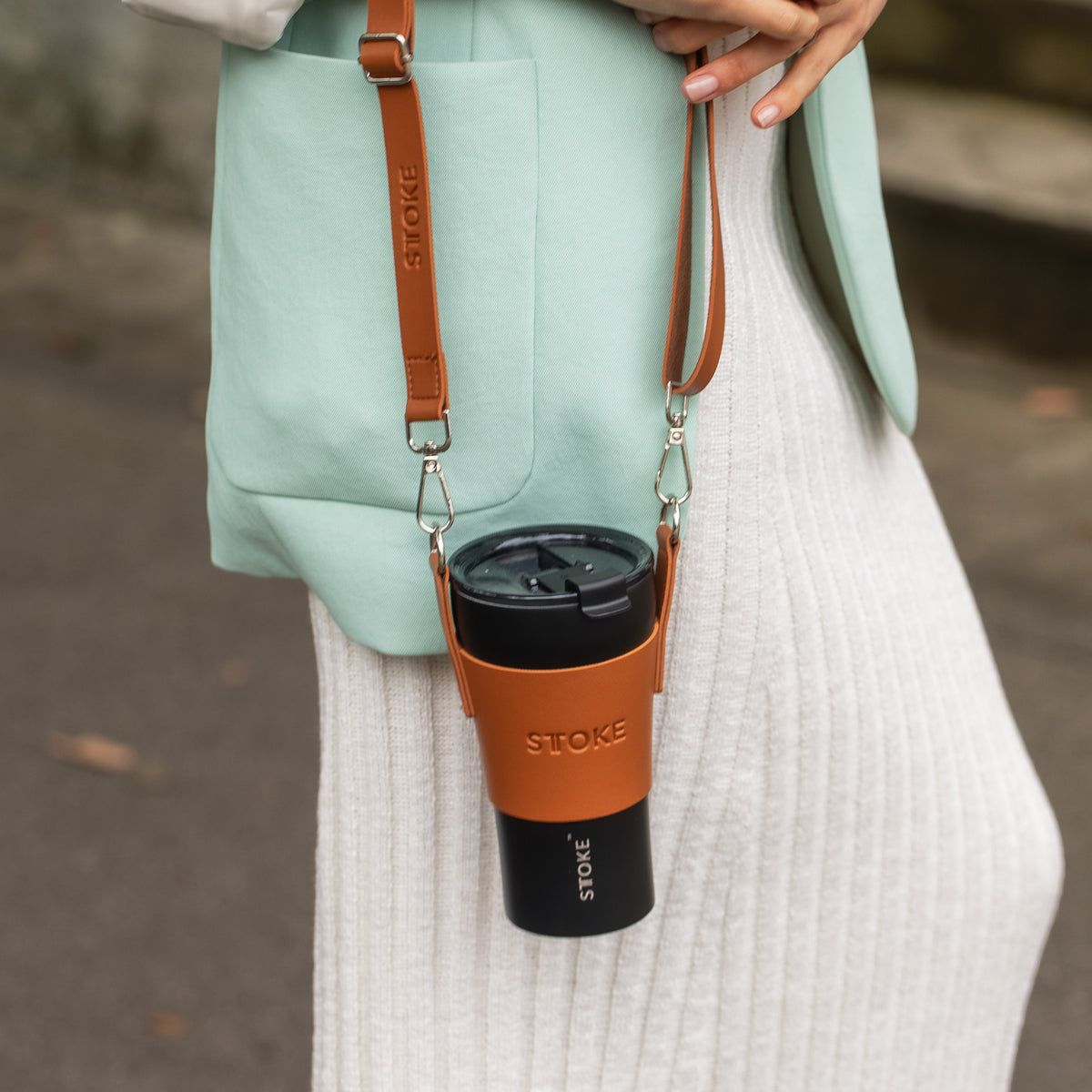 STTOKE専用にデザインされたキャリーストラップは、レザーのような質感と上品なカラーで、「持ち歩く」こと自体が心地よくなるアクセサリー。